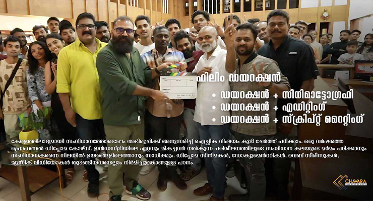 Chavara Film School, Kochi offers courses in direction, cinematography, editing, sound, acting, and filmmaking, combining practical training with industry exposure