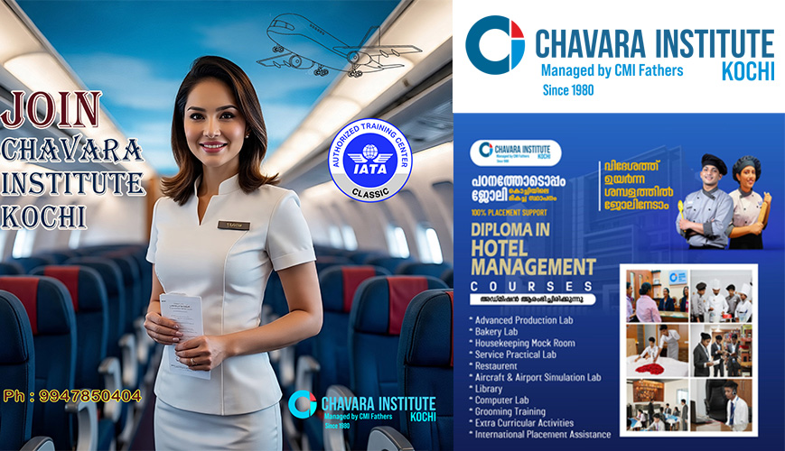 Chavara Institute, Kochi, an IATA Authorised Training Centre under the Chavara Cultural Centre, offers world-class programs in aviation, travel, and management. With 100% placement support and opportunities for on-the-job training, students gain real-world experience while studying. The institute combines academic excellence, skill development, and value-based education to prepare students for successful global careers.